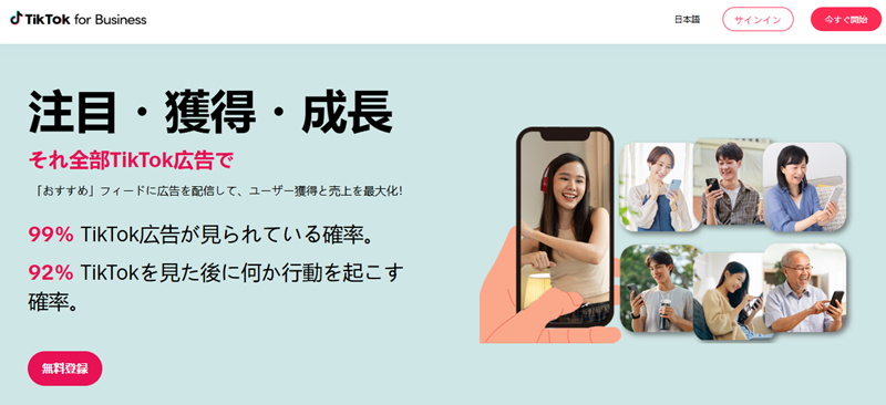 TikTok広告は、若年層(10代〜30代)へのリーチと拡散力が魅力です。短い動画でインパクトを与えられれば、アルゴリズムによって爆発的に露出が増える可能性があります。