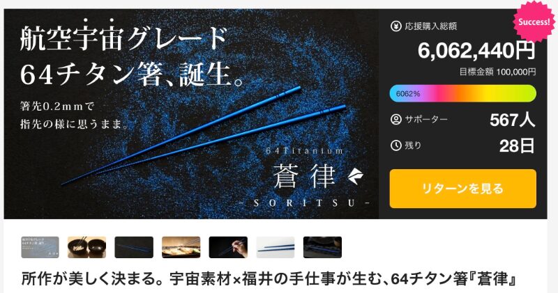 【クラファンNEWS】食卓と台所に“美しさ”と“心地よさ”を。箸・蒸し木釜・包丁の注目プロジェクト3選