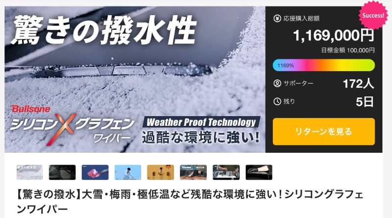 参照:【驚きの撥水】大雪・梅雨・極低温など残酷な環境に強い!シリコングラフェンワイパー(makuake)
