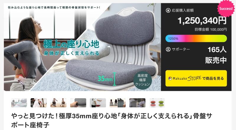 参照:やっと見つけた!極厚35mm座り心地「身体が正しく支えられる」骨盤サポート座椅子(makuake)