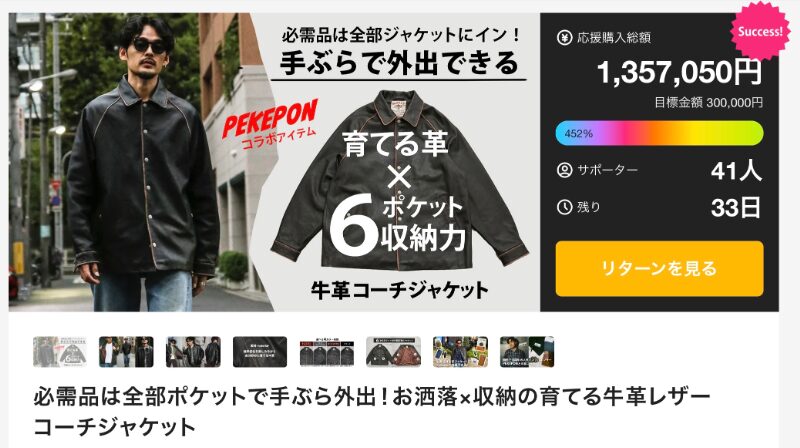 参照:必需品は全部ポケットで手ぶら外出!お洒落×収納の育てる牛革レザーコーチジャケット。(makuake)