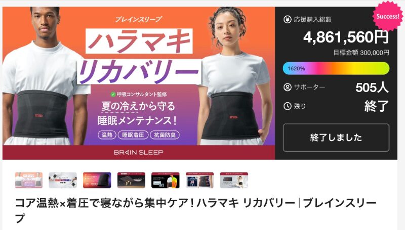 「夜に巻くだけ」という簡単な使い方も魅力で、忙しい毎日でも“ながらケア”が可能。特に女性や冷え性の方にとっては、生活の質を底上げする温活アイテムとして、リピーターが続出しています。支援金額は480万円超、支援者は500人以上。「朝が軽くなった」「冷えによる不調が改善した」という声が多数寄せられ、睡眠中のコンディショニングツールとしての期待も高まっています。