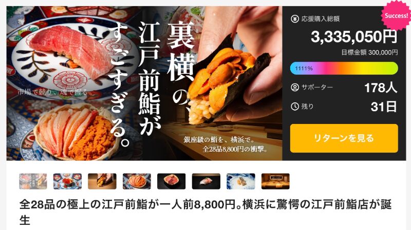 今回紹介した3つのプロジェクトはいずれも、“味わう”という行為を超えた“体験”そのものを提供しています。職人たちの技術、素材への情熱、空間の演出。どれもがクラウドファンディングという舞台を通じて、多くの人に新しい食文化を届けようとしているのです。
