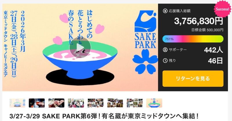 支援者数は440人、達成金額は370万円と高い関心を集めており、初心者から日本酒ファンまで幅広い層が参加しやすい点も特徴。蔵元と直接言葉を交わしながら味わう一杯は、ラベルやスペックだけでは伝わらない魅力を教えてくれます。イベント型クラファンの成功例として、今後の展開にも期待が高まります。