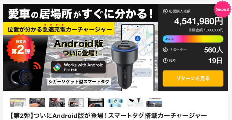 560人の支援者と450万円の達成金額が示すのは、「充電器=電気を供給するだけ」という固定概念がすでに古くなっているという事実です。車内という“動く生活空間”において、充電と位置管理が一体化することで生まれる安心感は、通勤やドライブ、旅行などあらゆるシーンで価値を発揮します。単なるアクセサリーではなく、車内の“見えない不安”を減らすインフラとしての役割を担うプロダクトです。