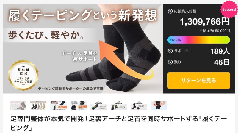 装着するだけで足の安定感が変わり、歩行時の負担軽減を実感できる設計は、専門家ならではの視点が随所に感じられる。達成金130万円以上、支援者180人という数字は、足の悩みが多くの人にとって切実であることを示している。派手なデザインではなく、機能と身体感覚に正面から向き合ったこのプロダクトは、長く使われることで真価を発揮するだろう。