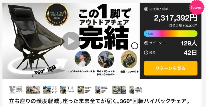 さらにハイバック仕様による包み込むような安定感は、長時間のデスクワークやリラックスタイムにおいて真価を発揮する。目標50万円に対し達成金額230万円以上、支援者120人という結果は、単なる椅子以上の価値が評価された証だ。家具は空間の一部であり、生活の質を左右する存在であることを、このプロジェクトは改めて示している。