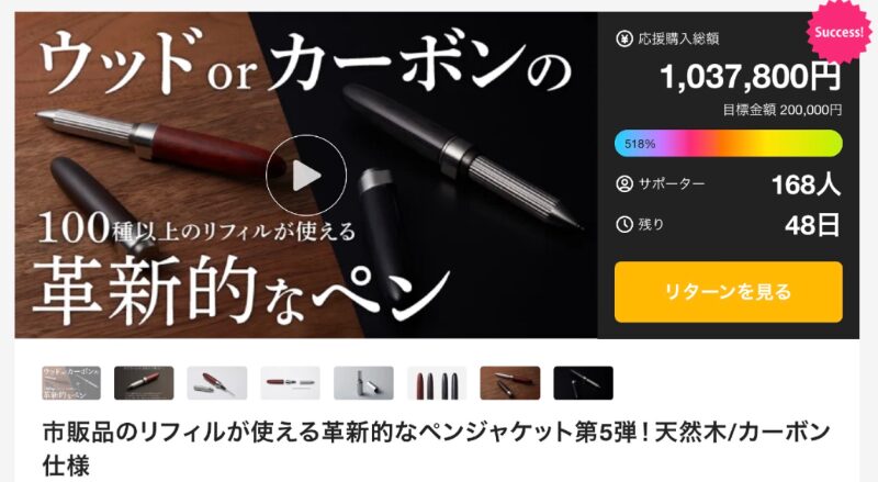 達成金100万円以上、支援者160人という支持は、単なる文具好きだけでなく、日常の質にこだわる層に響いた結果だろう。書くという行為は、思考を形にする時間でもある。その時間をより豊かに、より誇らしくする道具として、このペンジャケットは確かな説得力を持っている。