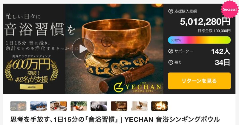 目標10万円に対し達成金500万円、支援者140人を集めるJapan Top TradeのYECHAN 音浴シンギングボウル。慌ただしい日常の中で、あえて“何もしない時間”をつくるという提案が共感を呼んでいる。1日15分、音に身を委ねるだけのシンプルな習慣。それが「音浴」という新しいセルフケアの形だ。