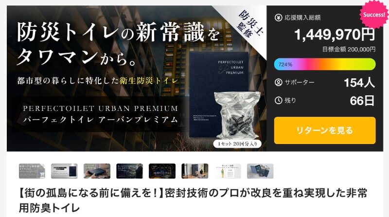 特に「Makuake」では、日常生活の小さな不便や不安を解決する製品が多くの共感を集めている。災害時の衛生問題を解決する非常用トイレ、短時間で体を刺激できるセルフケアツール、そしてスマートフォンの指紋汚れをリセットするクリーナーなど、生活に密接に関わるテーマのプロジェクトが注目されている。今回紹介する三つのプロジェクトも、そうした実用性の高いアイデアから生まれた取り組みとして、多くの支援を集めている。