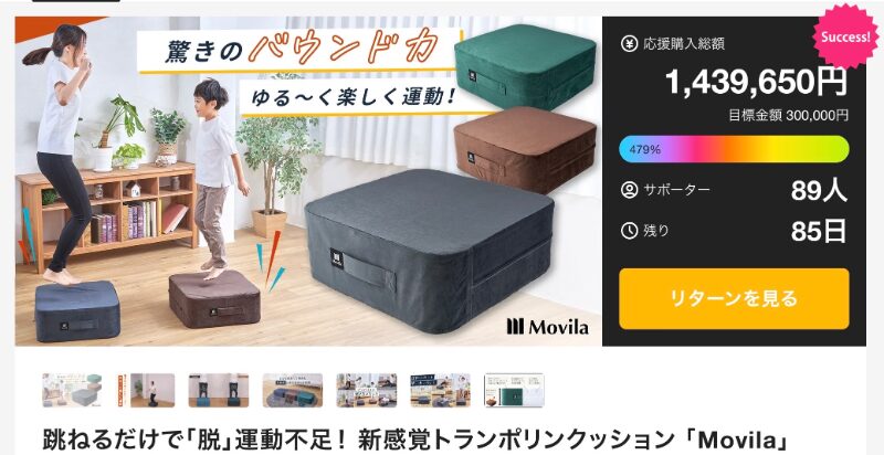 インテリアに馴染むデザインで出しっぱなしにできるため、思い立った瞬間に体を動かせる点も大きな魅力だ。支援者数は多くないものの、運動不足を自覚しながらも続かなかった人たちの共感を着実に集めている。無理なく始められることこそ、習慣化への第一歩だと気づかせてくれるプロジェクトと言える