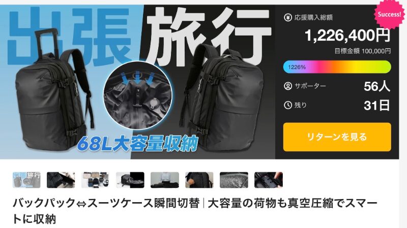 目標10万円に対し120万円、支援者50人という数字は、派手さよりも実用性を重視する層からの確かな支持を示しています。SETO WORKSが描くのは、移動そのものを快適にする未来です。荷物が減ることで、行動範囲は広がり、判断は軽くなります。CANZ AIRは、旅を「準備の負担」から解放し、本来の目的に集中させてくれる存在と言えるでしょう。