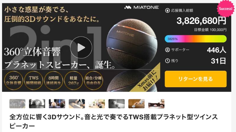 参照:全方位に響く3Dサウンド。音と光で奏でるTWS搭載プラネット型ツインスピーカー(makuake)