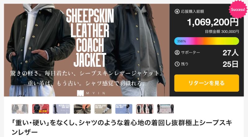 参照:「重い・硬い」をなくし、シャツのような着心地の着回し抜群極上シープスキンレザー(makuake)