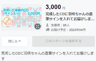 参照:羽咲みはるオリジナル楽曲制作プロジェクト(CAMPFIRE) - 直筆サイン入りCD/低価格リターン