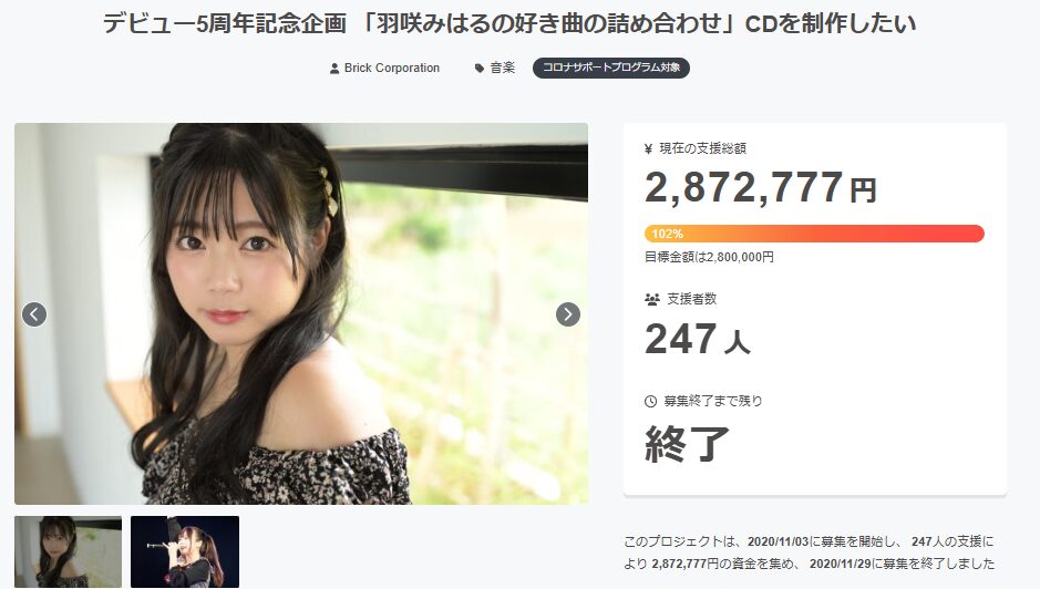 参照:羽咲みはるオリジナル楽曲制作プロジェクト(CAMPFIRE)