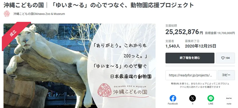 参照:沖縄こどもの国|「ゆいま~る」の心でつなぐ、動物園応援プロジェクト(READYFOR)