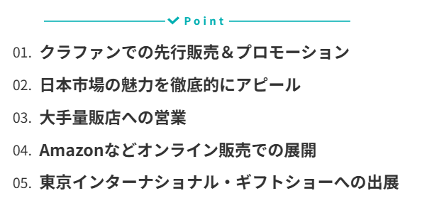 クラファンはあくまでも日本市場展開のスタート地点です。一度きりの取引で終わらせず、長期的なパートナーシップを築くことで、ビジネスを大きく成長させることができます。
