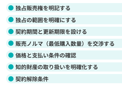 ここでは、独占販売の交渉を進める上で注意したいポイントを解説します。