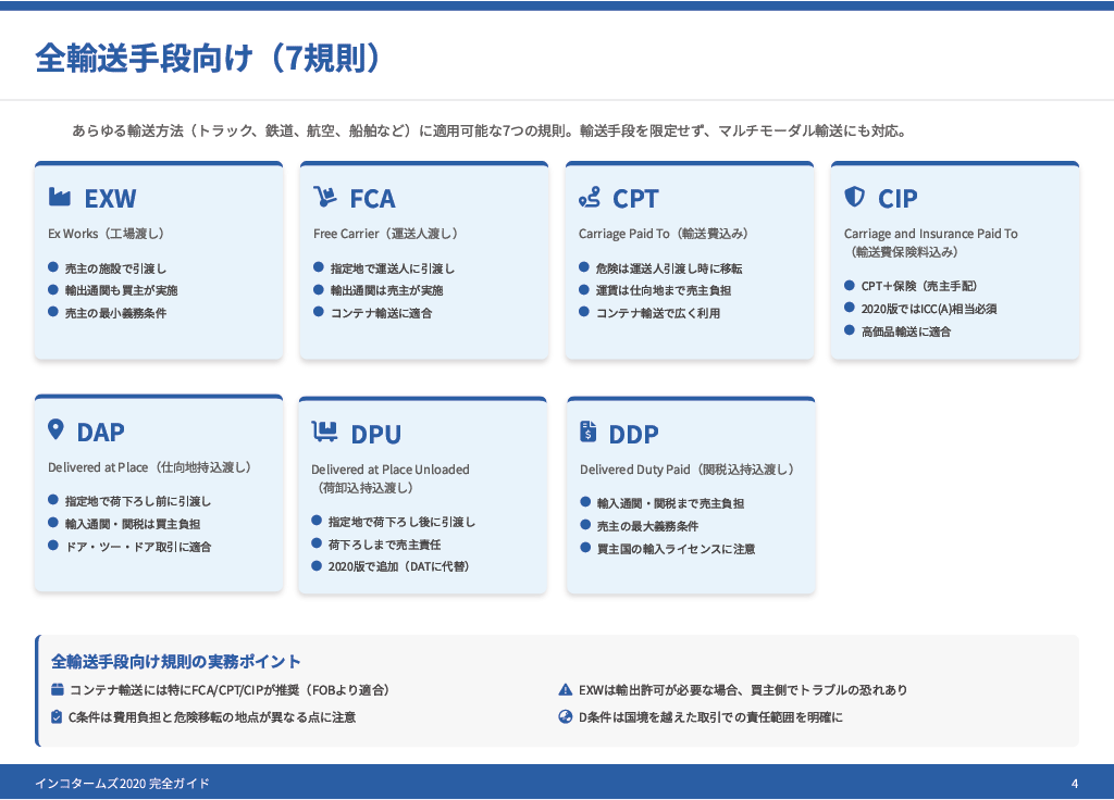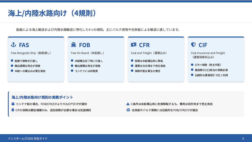 インコタームズは以下のポイントをもとに判断してください。