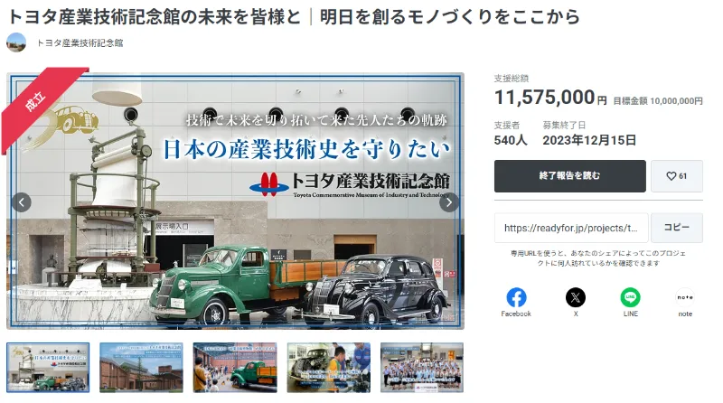 トヨタ産業技術記念館クラファンに1150万円の支援が集まった理由