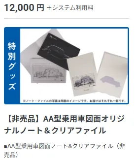 AA型乗用車図面オリジナルノート&クリアファイル/中価格リターン